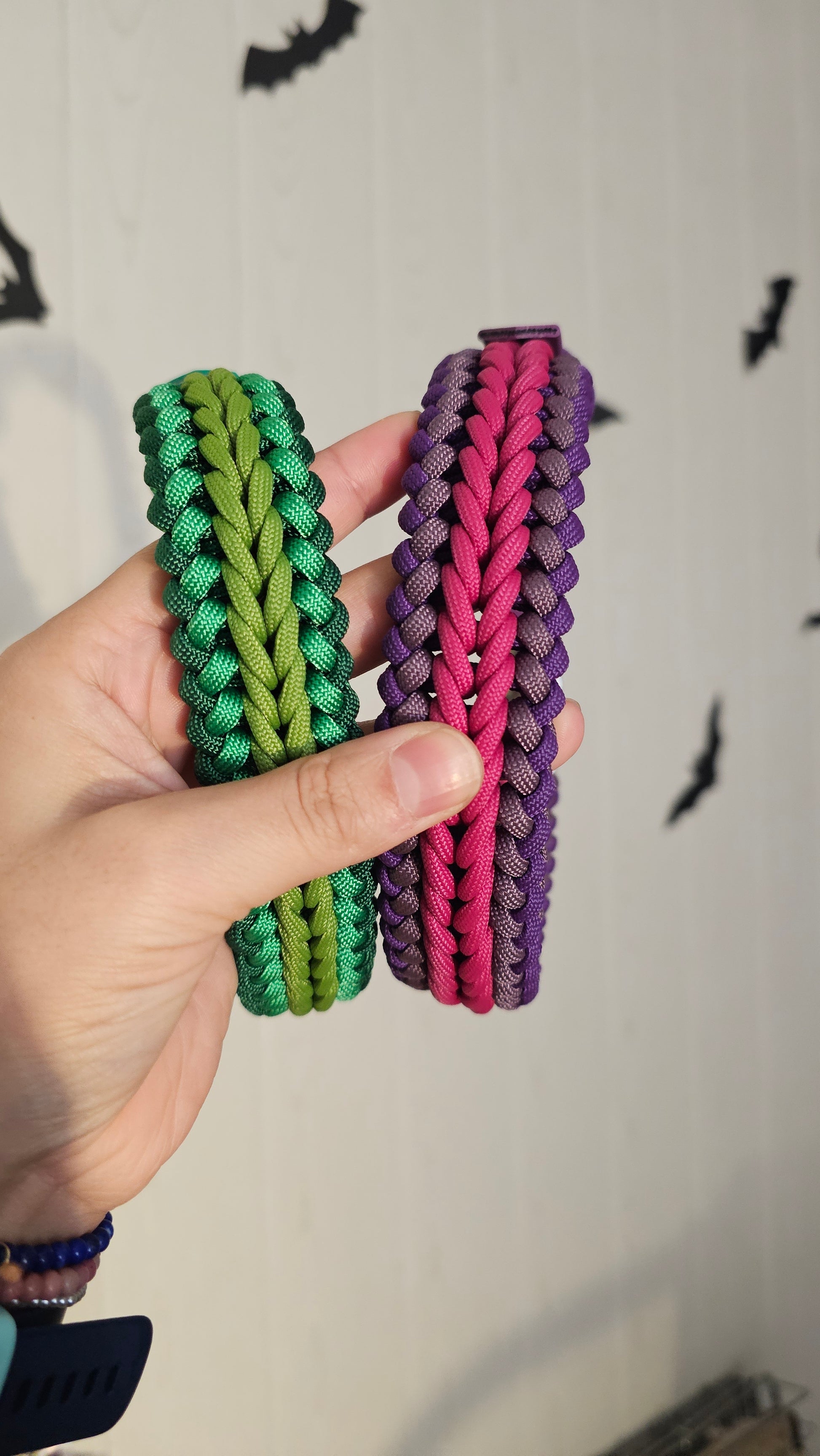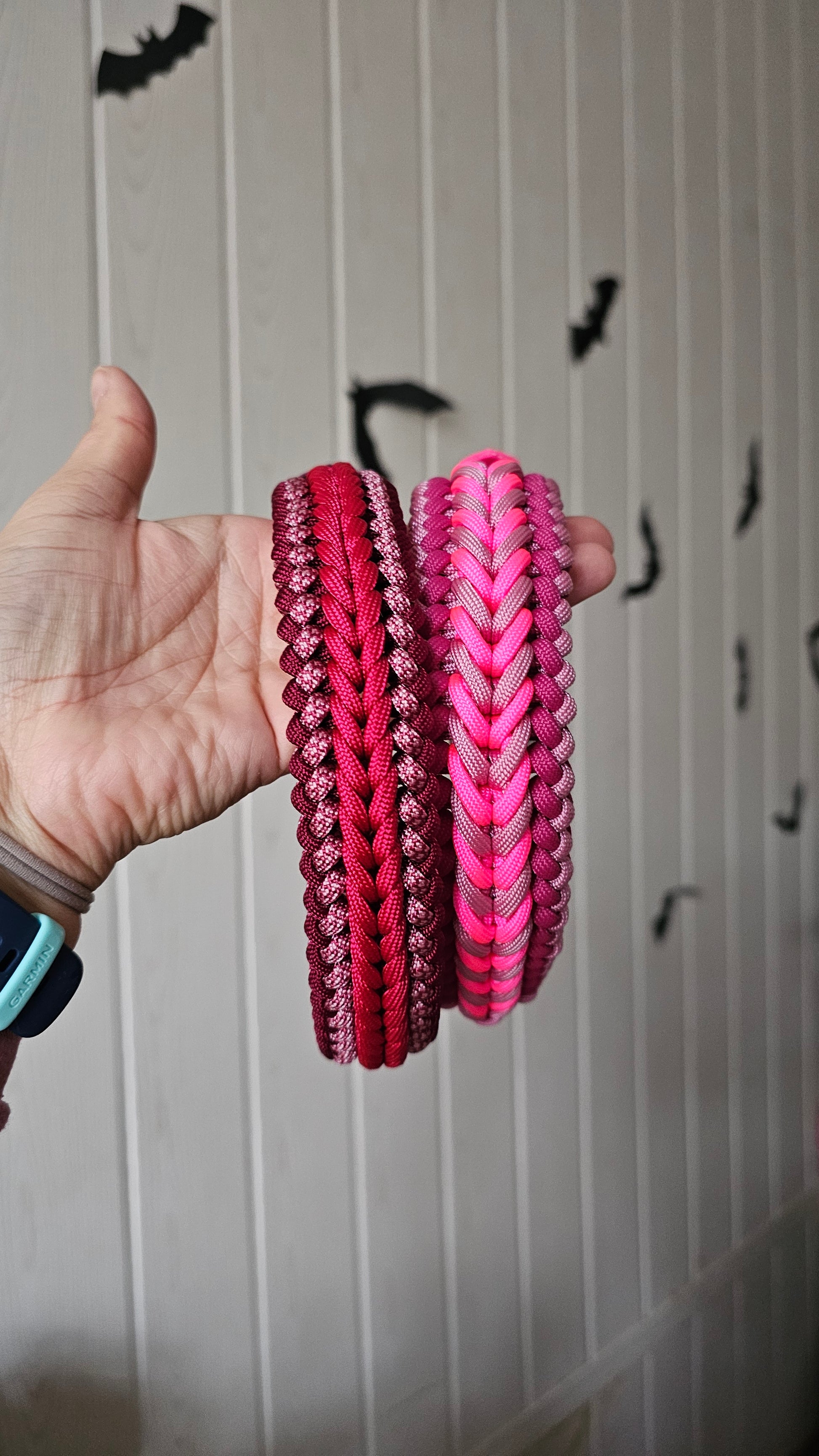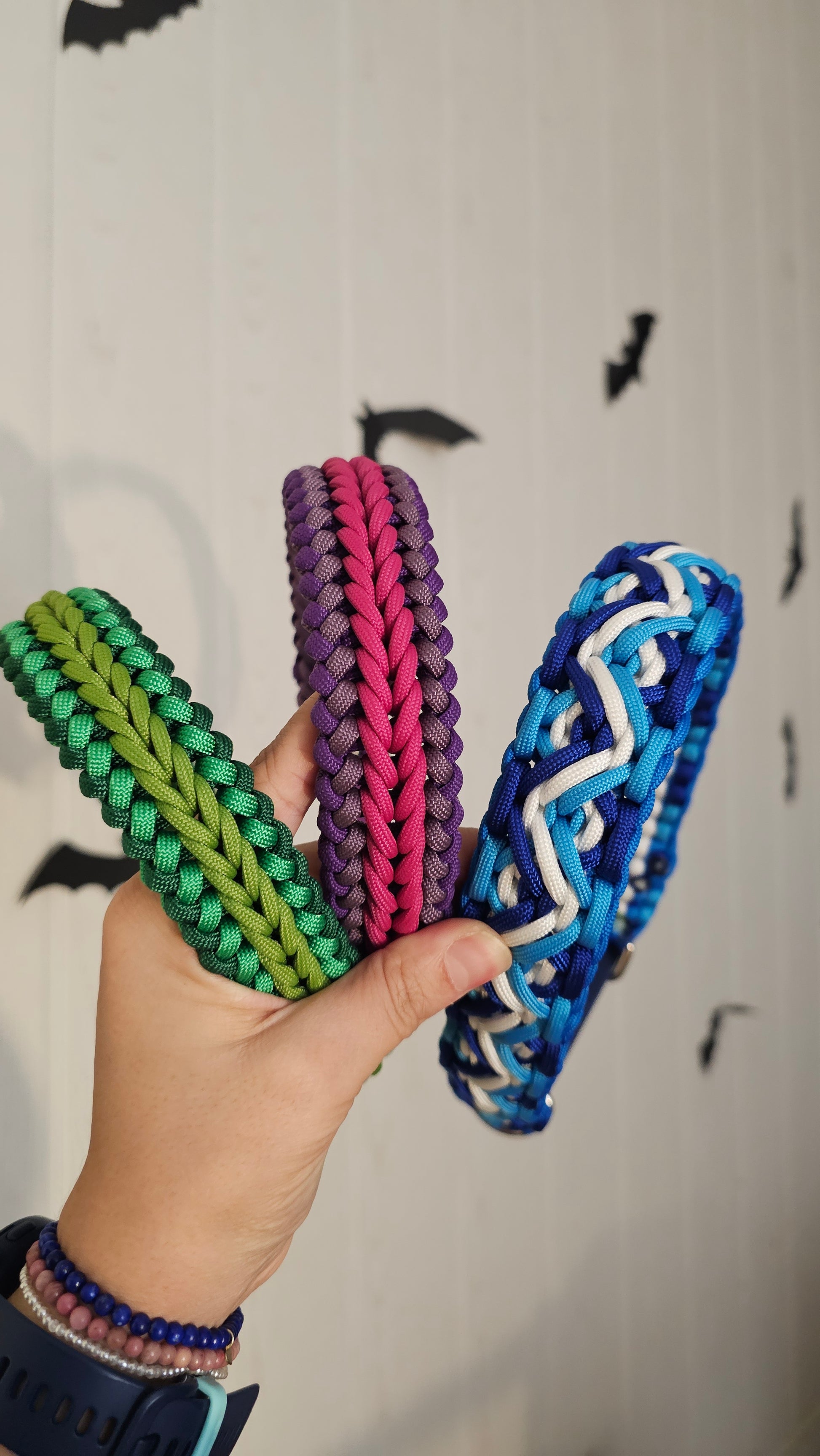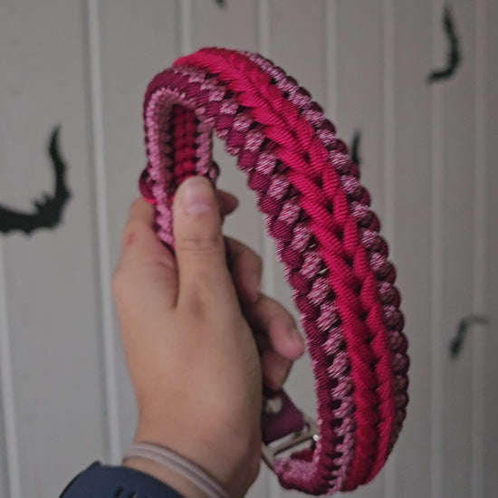 Tento paracordový obojek je díky své šířce vhodný spíše pro střední a velká plemena. Pokud byste chtěli tento vzor pro menší plemeno, je možné po předchozí domluvě uplést obojek z lanek s menším průměrem, kontaktujte nás v tomto případě na Instagramu.