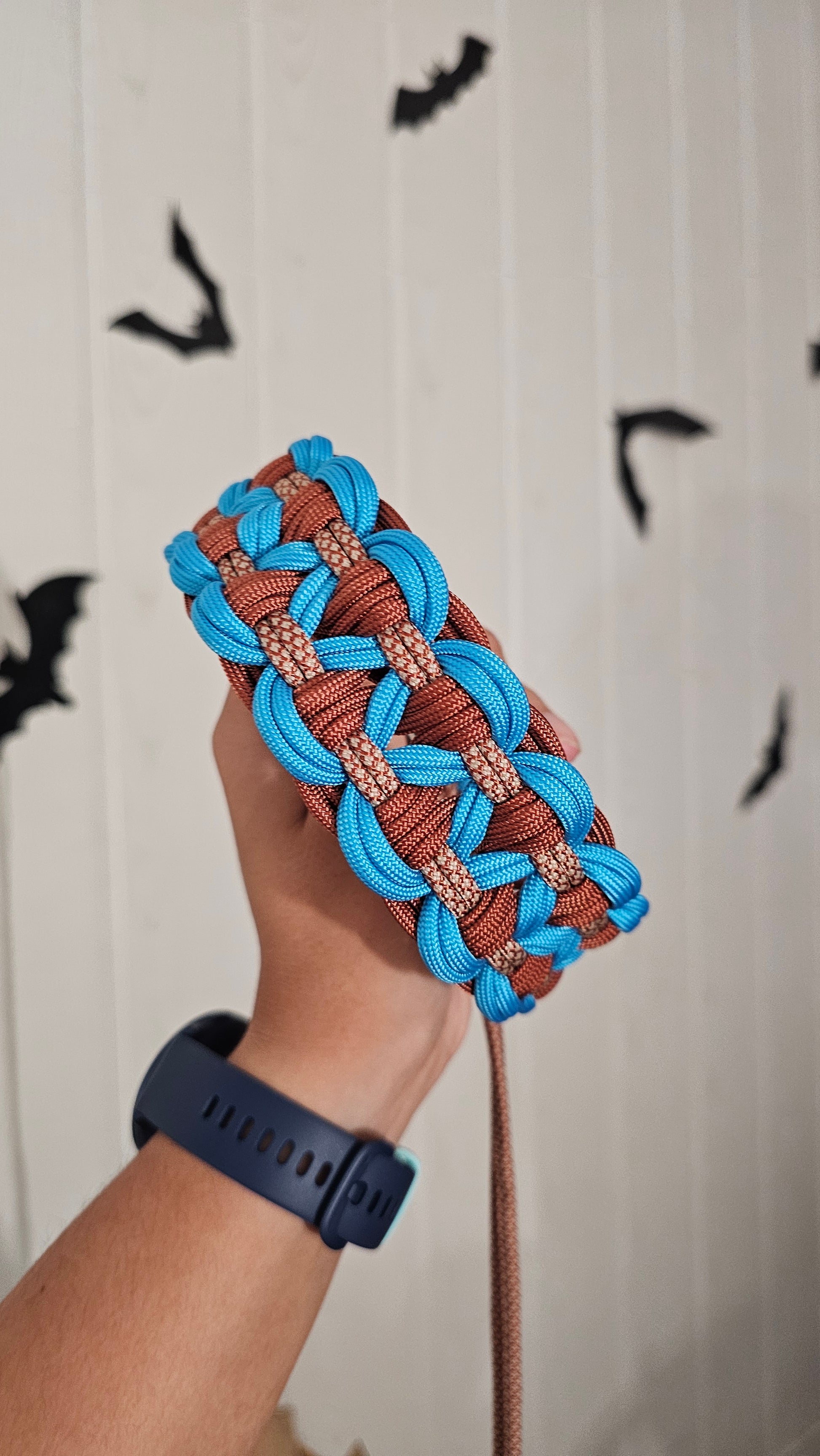 Tento paracordový obojek je díky své šířce vhodný spíše pro střední a velká plemena. Pokud byste chtěli tento vzor pro menší plemeno, je možné po předchozí domluvě uplést obojek z lanek s menším průměrem, kontaktujte nás v tomto případě na Instagramu.