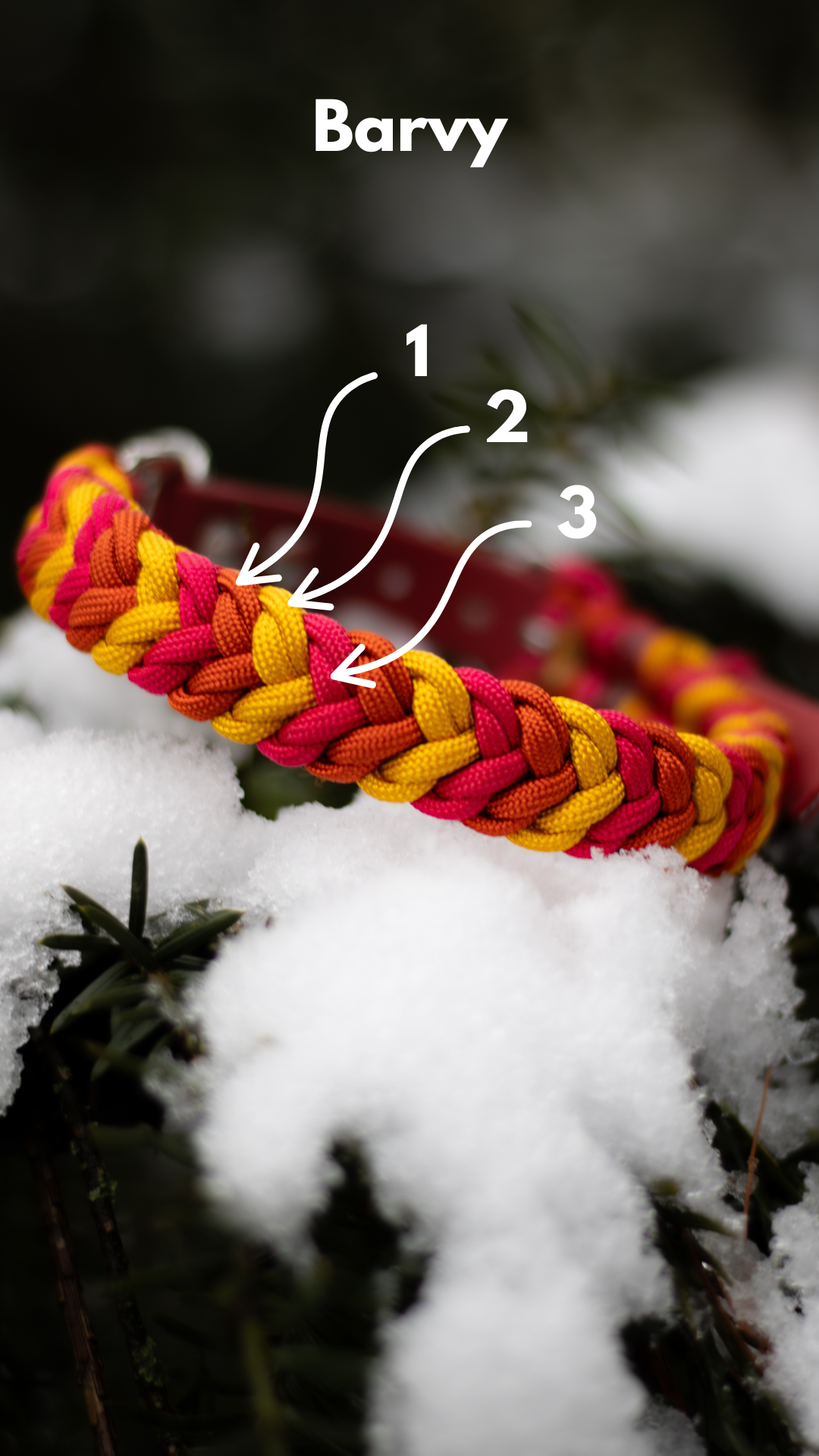 Tento vzor obojku patří k našim užším vzorům <3 Je tedy díky své šířce 2 cm vhodný pro střední a malá plemena psů a standardně je u něho možné nakombinovat 3 barvy paracordu.